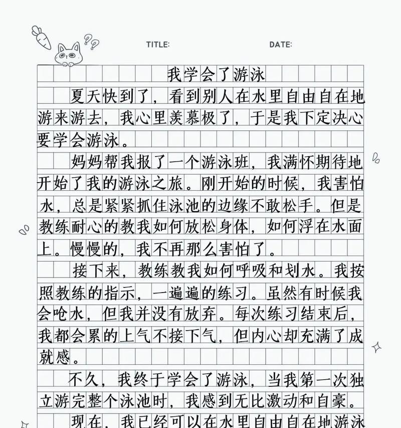 通过合理的方法与技巧,培养小学生游泳能力对他们的成长和安全有着重要的影响。家长和学校应共同努力,为小学生提供良好的游泳教育环境和机会,让他们在游泳中享受快乐,充实自己。